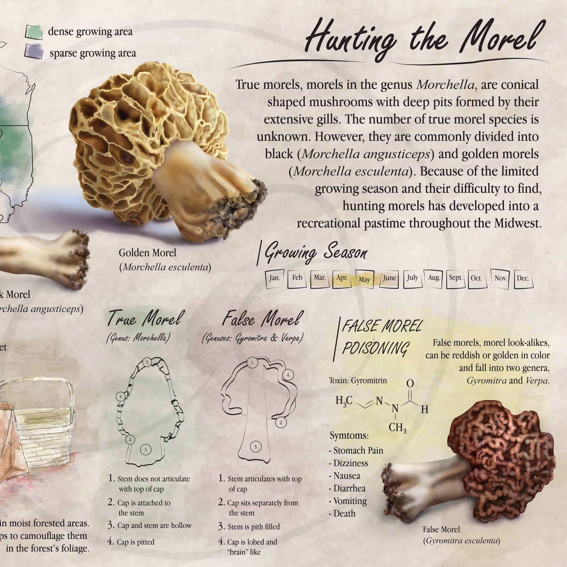 Morel Informational Poster, NSF Vizzies Visualization Challenge Semi-finalist, Created in Adobe Photoshop and InDesign