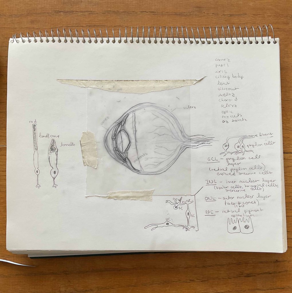 After some minor feedback on the first draft from the client, I adjusted the lens to be more rounded and added texture to the choroid and on the iris. Additionally, on the retinal section I changed the size and number of the cells to be more accurate based on the client’s feedback.