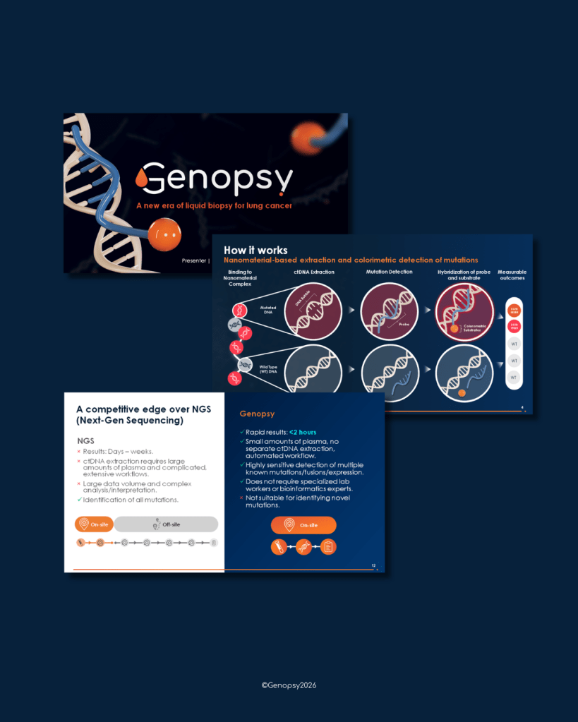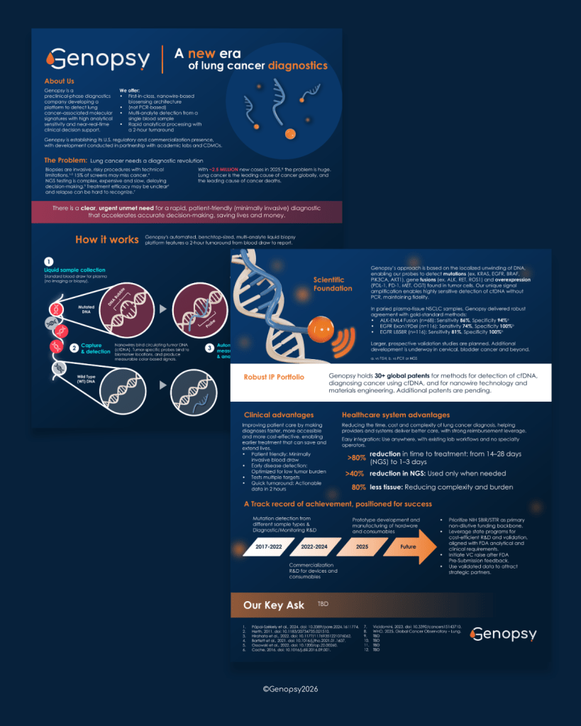 This project combined my background in brand design and medical illustration to bring together a breadth of materials for Genopsy a pre-clinical phase diagnostic company. The illustrations and associated materials help to better communicate their science to interested investors.