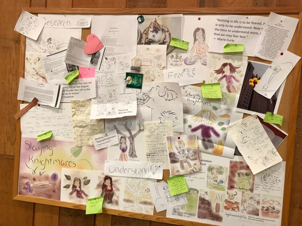 The children’s book, Slaying Knightmares, was developed as a part of the Iowa State Focus Artist Grant Program. I received a $600 grant to print my book after submitting a written grant proposal and giving a presentation to the 2017 Focus Grant Committee. I worked with my adviser, Paula Streeter and the Focus Grant Committee, over the course of the year to perfect my final story line and product.
